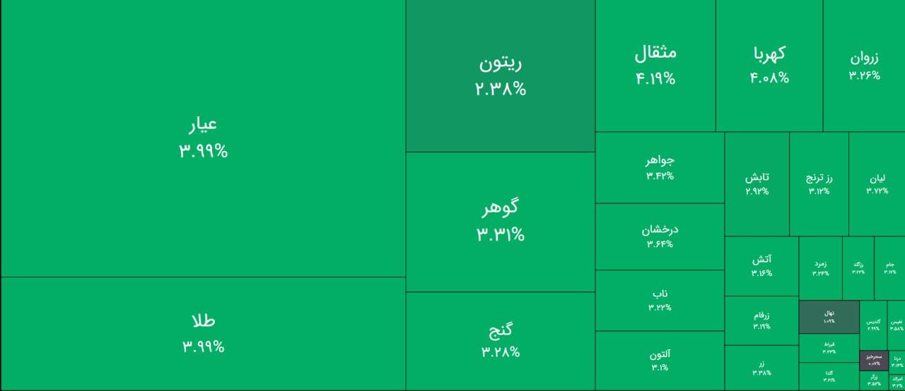 ۱۰۰ درصد نمادهای صندوقهای طلا نیز در پایان ساعت فعالیت بورس کالا در معاملات ۸ آذر، مثبت به کار خود پایان دادند. بازدهی یک روزه صندوقهای طلا بین ۳ تا ۴.۵ درصد بود.