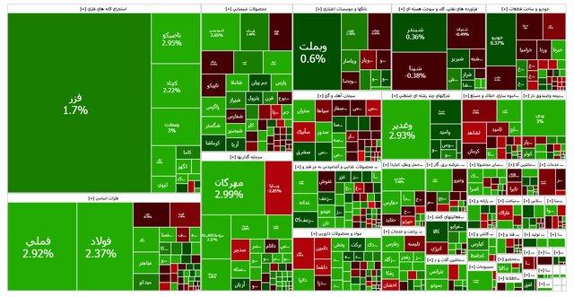 فملی، فارس و فولاد به ترتیب بیشترین تاثیر مثبت را بر شاخص بورس داشتند. از نمادهای پرتراکنش نیز میتوان به داترا، مهرگان و وبملت اشاره کرد.