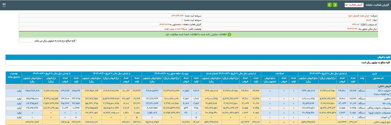 بررسی وضعیت این شرکت خودرویی در سامانه کدال نشان می دهد که در هشت ماه امسال روند تولید گروه X ۲۰۰ (تیبا، کوئیک، ساینا) ۸۰ هزار و ۳۲۳ دستگاه، خودروی شاهین ۲۱هزار و ۱۷۴ دستگاه و چانگان هشت هزار و ۲۰ دستگاه است.