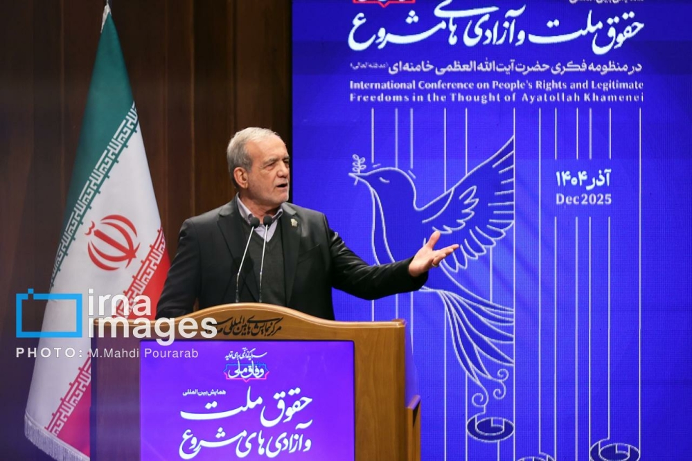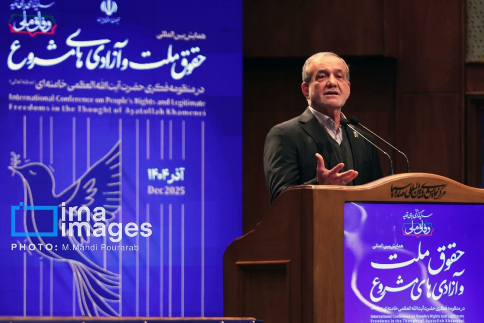 همایش بین المللی حقوق ملت و آزادی های مشروع در منظومه فکری رهبری صبح چهارشنبه(۱۲ آذر ۱۴۰۴) با حضور «مسعود پزشکیان» رییس جمهور در سالن همایش های بین المللی صداوسیما برگزار شد.