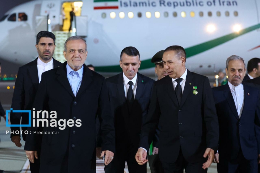 مسعود پزشکیان رییس جمهوری اسلامی ایران شامگاه پنجشنبه ( ۲۰ آذر ۱۴۰۴ ) وارد فرودگاه ترکمنستن شد و مورد استقبال قرار گرفت.
