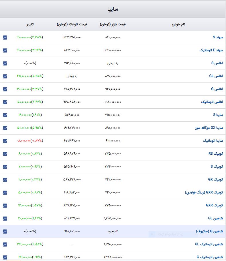 گروه خودروهای سایپا ۱۵۱ GX (لاینر)، سایپا ۱۵۱ GX ، سایپا ۱۵۱ (لاینر) و سایپا ۱۵۱ افزایش بین ۵ تا ۱۸ میلیون تومانی و انواع مدل در گروه کوئیک نیز افزایش بین ۲ تا ۱۲ میلیون تومانی داشتند.