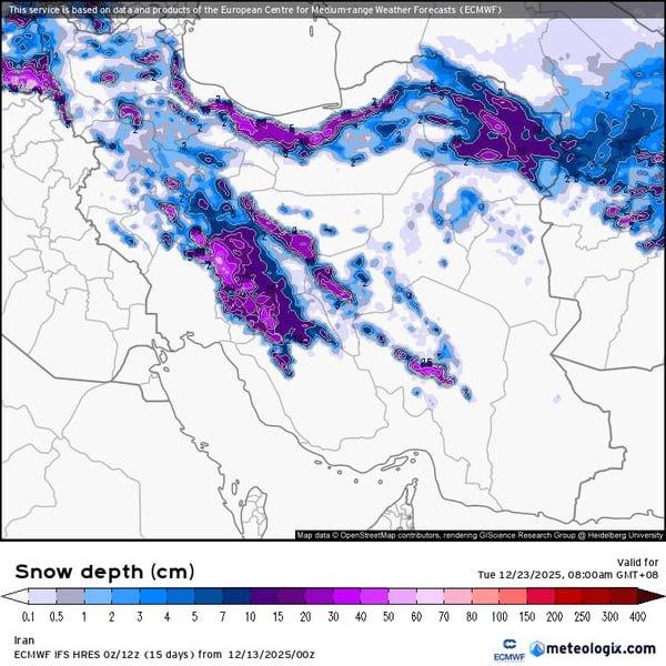 ایران آنلاین: براساس تحلیل مدل معتبر اروپایی ECMWF، از امروز ۲۳ آذر تا ۲ دی، بارش برف این مناطق را تحتتاثیر قرار خواهد داد.