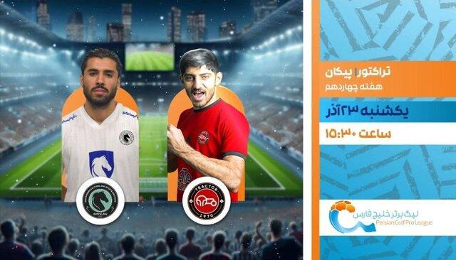 دو تیم تراکتور و پیکان در چارچوب رقابتهای هفته چهاردهم لیگ برتر خلیج فارس هم امروز یکشنبه ۲۳ آذر از ساعت ۱۵:۳۰ به مصاف هم می روند. شبکه ورزش این تقابل را به صورت زنده پخش میکند.