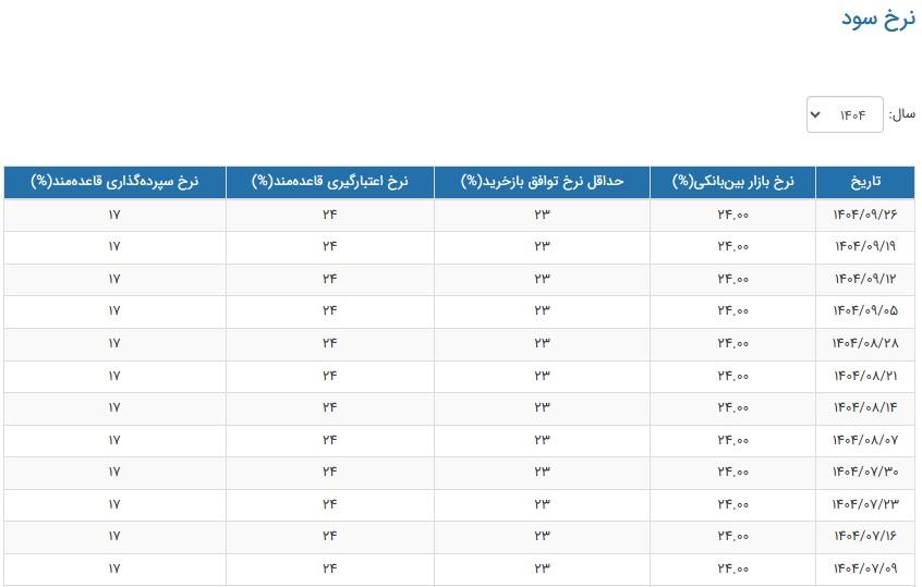 ایران آنلاین: بر اساس اعلام بانک مرکزی، نرخ سود بین بانکی در پایان هفته منتهی به ۲۶ آذر برای دوازدهمین هفته متوالی در رقم ۲۴ درصد ثابت باقی ماند.