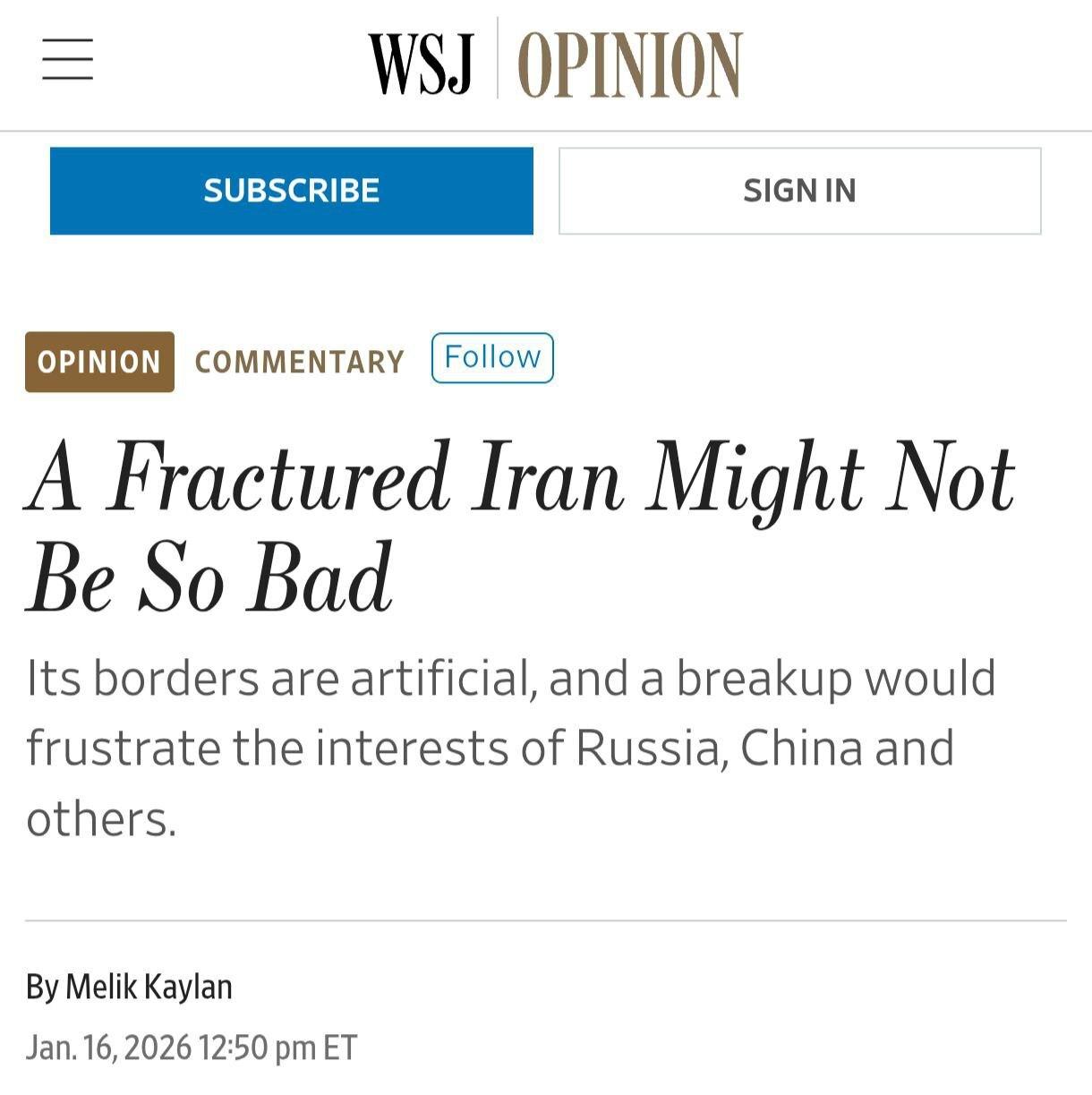 ایران آنلاین: روزنامه وال استریت ژورنال در گزارشی مدعی شد: یک ایران تجزیه شده ممکن است خیلی هم بد نباشد. مرزهای ایران ساختگی هستند و تجزیه این کشور منافع روسیه، چین و دیگران را هدف قرار میدهد!