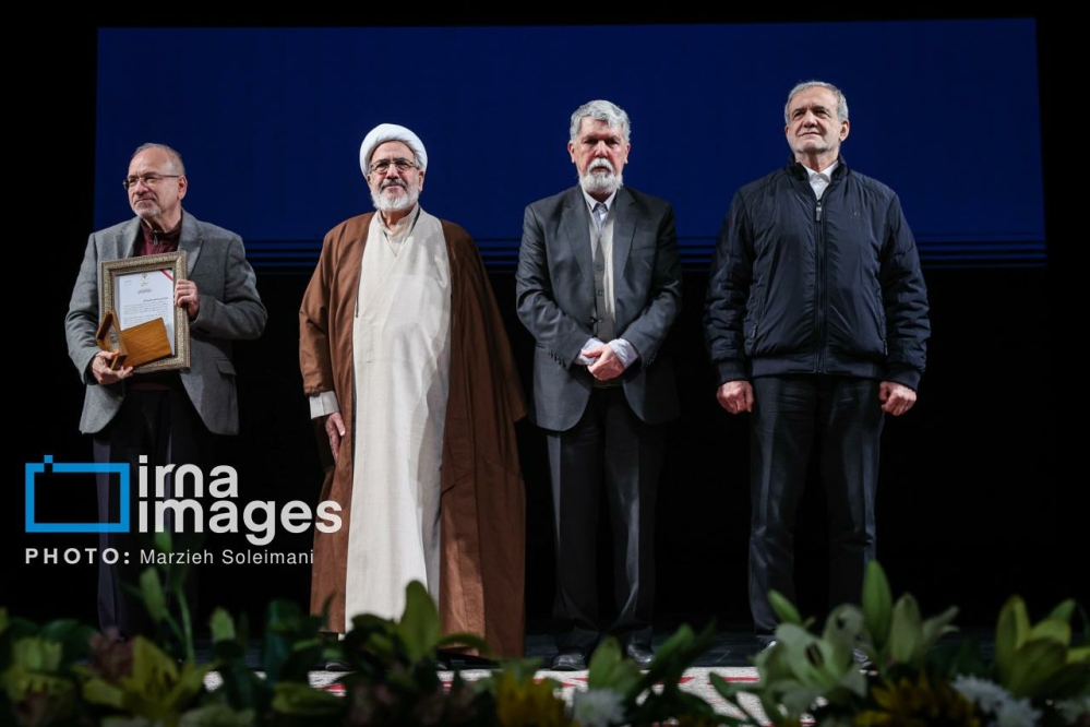 اختتامیه چهلوسومین جایزه کتاب سال جمهوری اسلامی ایران صبح یکشنبه (۱۹بهمن ۱۴۰۴) با حضور مسعود پزشکیان رئیس جمهور، اهالی قلم و اصحاب فرهنگ و دانش در تالار وحدت برگزار شد.