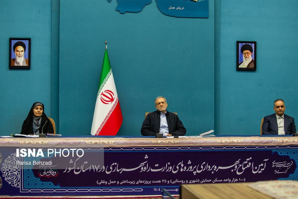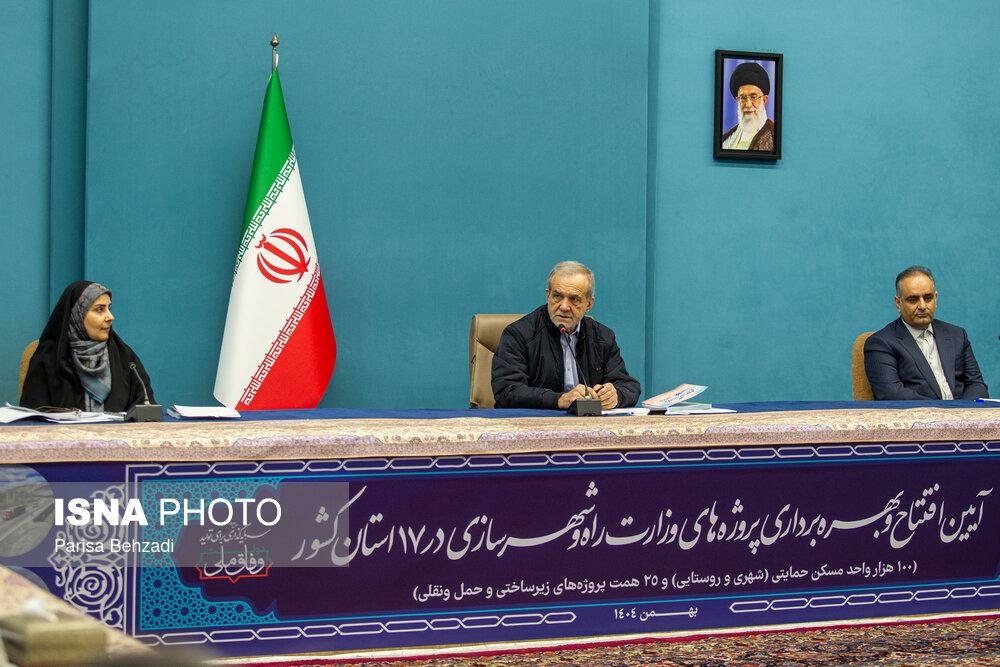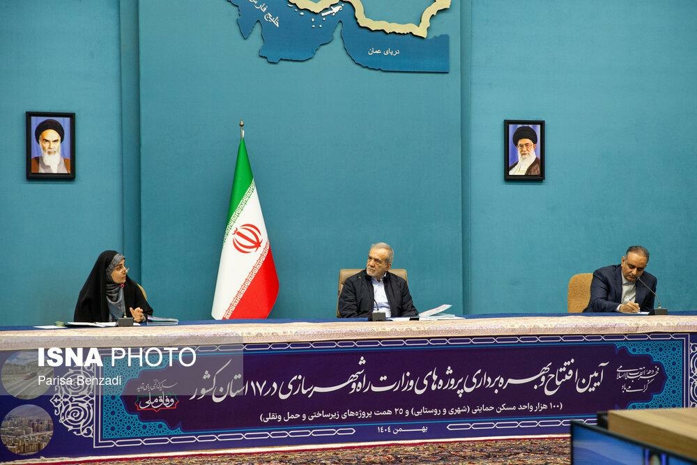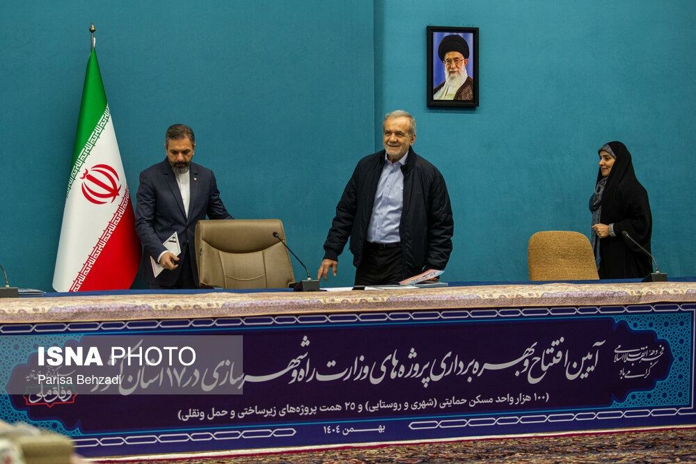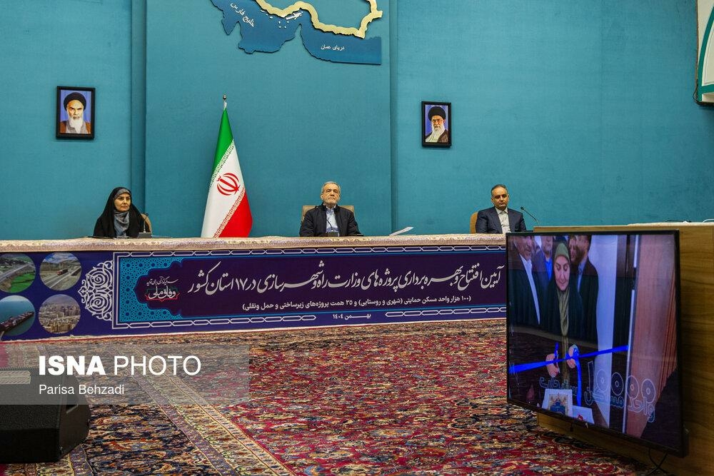 آیین بهره برداری از پروژه های وزارت راه و شهرسازی سه شنبه ۲۱ بهمن ۱۴۰۴ با حضور مسعود پزشکیان، رئیس جمهور و فرزانه صادق، وزیر راه و شهرسازی در ساختمان شهید بهشتی نهاد ریاست‌ جمهوری برگزار شد.