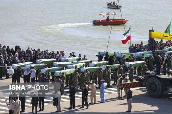 گزارش تصویری/ ورود پیکر پاک ۸۵ شهید دوران دفاع مقدس از طریق مرز آبی اروند به کشور
