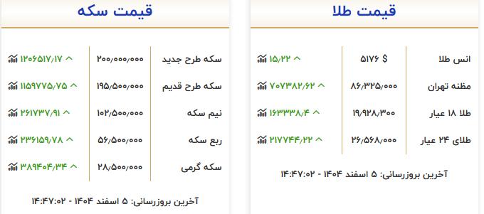 به گزارش ایرنا، هر قطعه سکه طرح جدید با بیش از یک میلیون و ۲۰۰ هزار تومان افزایش، به ۲۰۰ میلیون تومان رسید و سکه طرح قدیم با رشد یک میلیون و ۱۵۹ هزار تومانی به ۱۹۵ میلیون و ۵۰۰ هزار تومان رسید.
