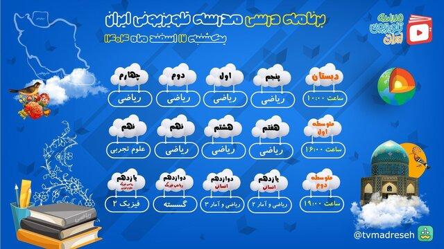 ایران آنلاین: برنامه درسی مدرسه تلویزیونی ایران روز یکشنبه ۱۷ اسفند ماه از شبکه آموزش سیما طبق جدول زیر پخش میشود: