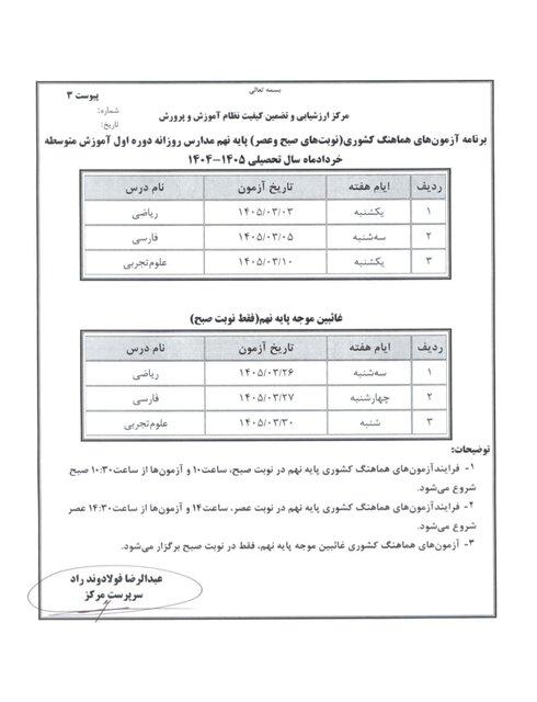 برنامه امتحانات نهایی خرداد ۱۴۰۵ دانش آموزان اعلام شد