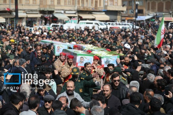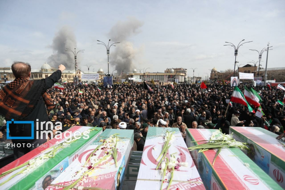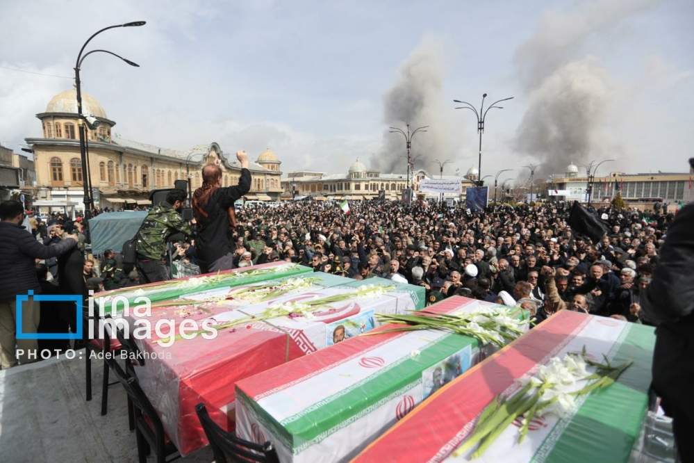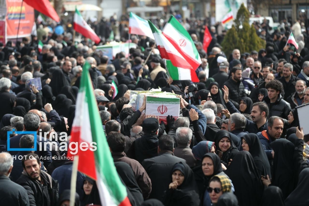 گزارش تصویری/ تشییع پیکر پنج شهید در همدان زیر بمباران دشمن