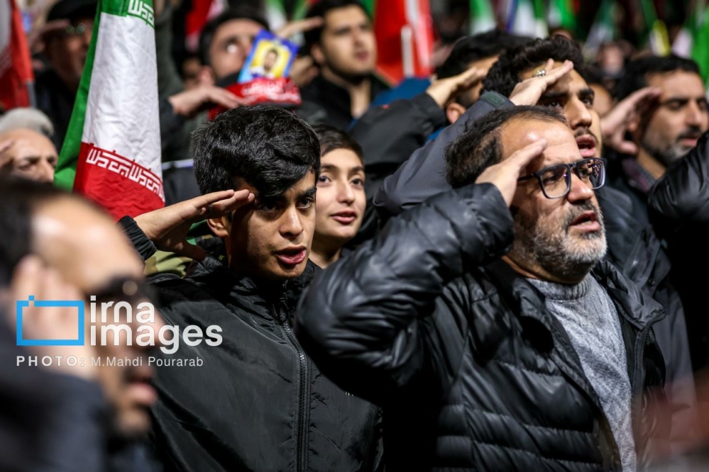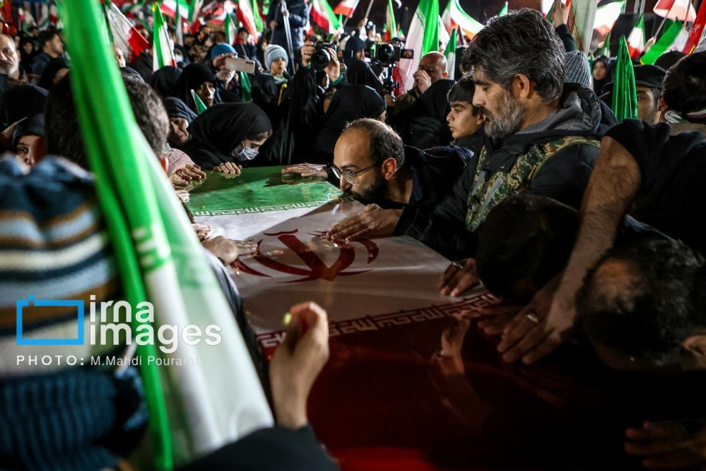 مراسم وداع با شهدای ناوشکن دنا، شامگاه سه‌شنبه (۲۶ اسفند ۱۴۰۴) با حضور گسترده قشرهای مختلف مردم در میدان ونک برگزار شد و شرکت کنندگان با سردادن شعارهایی بر ادامه راه شهدا، حمایت از سومین رهبر انقلاب، حفظ وحدت و انسجام ملی تاکید کردند.