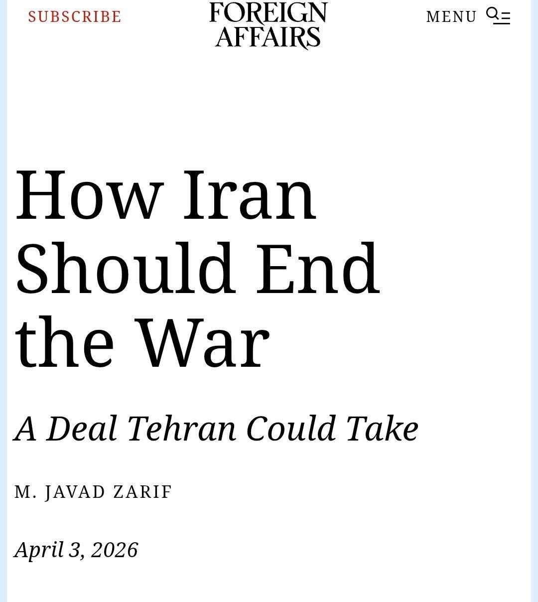 متن کامل مقاله محمد جواد ظریف در مجله «فارین افرز» به شرح زیر است؛