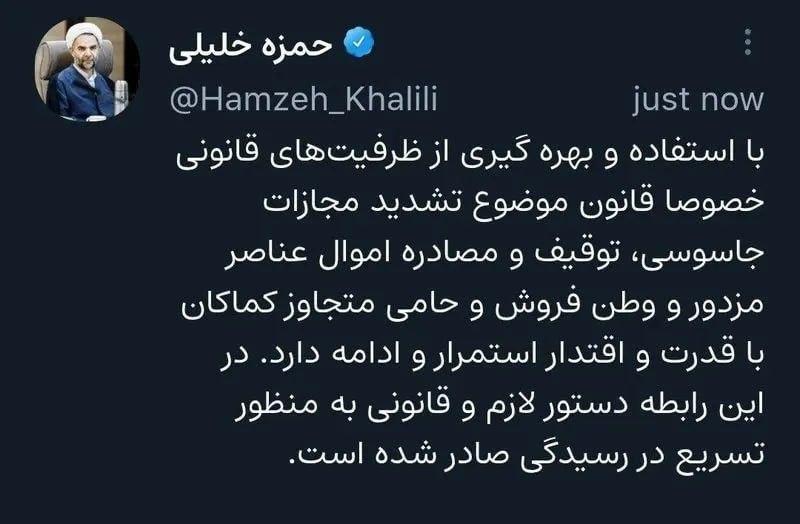 معاون اول قوه قضائیه در شبکه ایکس نوشت: توقیف و مصادره اموال عناصر وطن‌فروش با قدرت ادامه دارد.