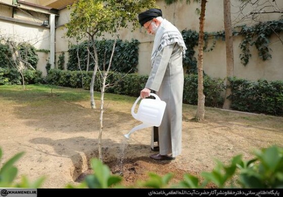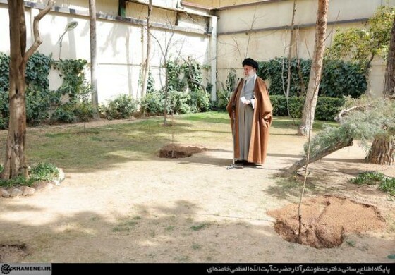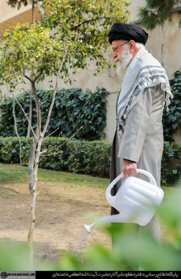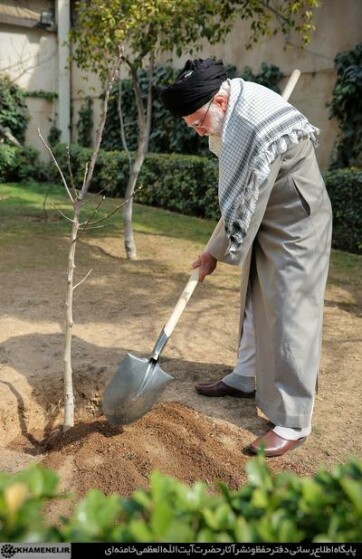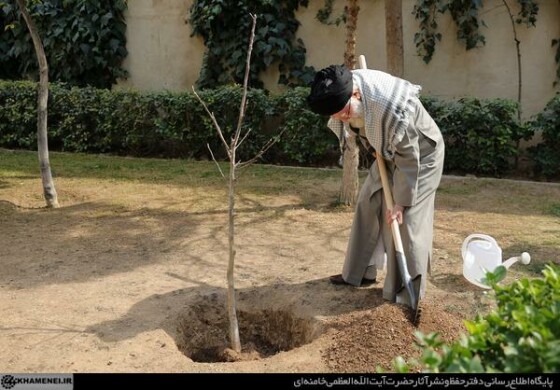 حضرت آیتالله خامنهای رهبر انقلاب اسلامی در هفته منابع طبیعی و همزمان با روز درختکاری صبح امروز چهارشنبه، سه اصله نهال کاشتند.