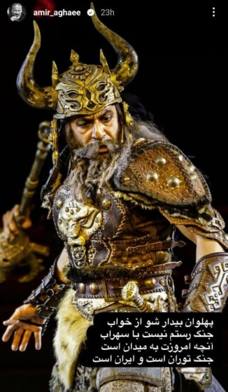 امیر آقایی (بازیگر ۴۹ ساله) که اخیرا با نمایش «نبرد رستم و سهراب» روی صحنه رفته بود، یک استوری معنادار با شعری از شاهنامه منتشر کرد.