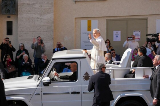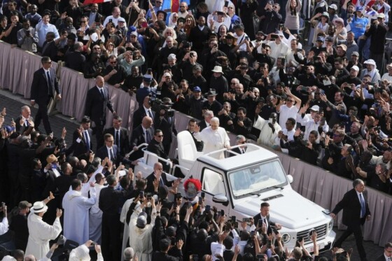 رهبر جدید کاتولیکهای جهان در آستانه مراسم تحلیف، با خودروی ویژه پاپ اعظم، در میدان «سنپیترو» که حدود ۲۵۰ هزار نفر را برای ادای احترام به وی گردهم آورده است، گشت زد.