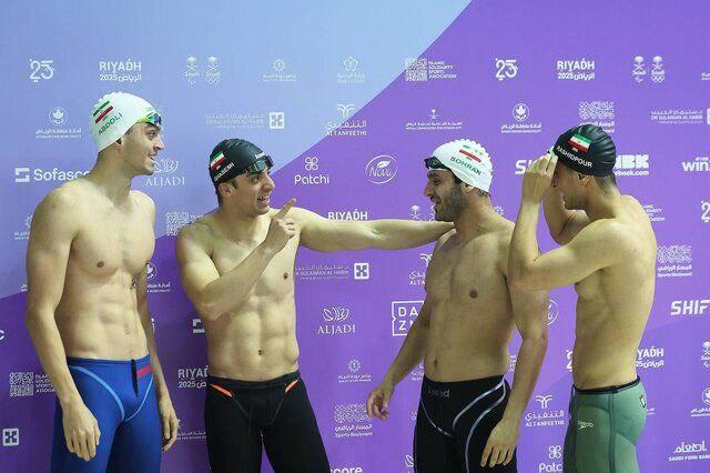 تیم امدادی ۴ در ۱۰۰ متر آزاد مردان متشکل از سامیار عبدلی، متین سهران، سینا غلامپور و علی رشیدپور، با زمان درخشان ۳:۲۹.۱۵ ثانیه، به عنوان تیم دوم به فینال رسیدند و امیدها برای کسب مدال را زنده نگه داشتند.